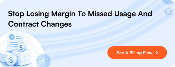 Usage-based billing is not only cloud consumption. It includes endpoints, backups, security events, bandwidth, and add-on usage that changes month to month. Your billing system should pull usage and map it to the right customer plan and margin rules.